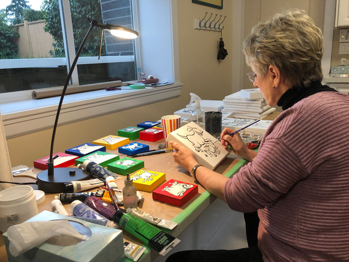 She's been enjoying time with her granddaughter and grandson, travelling, and doing many other things, including painting with acrylics! You can see some of her art below.