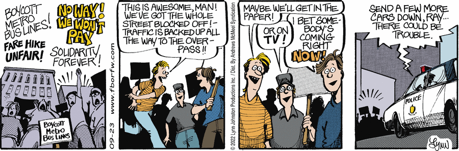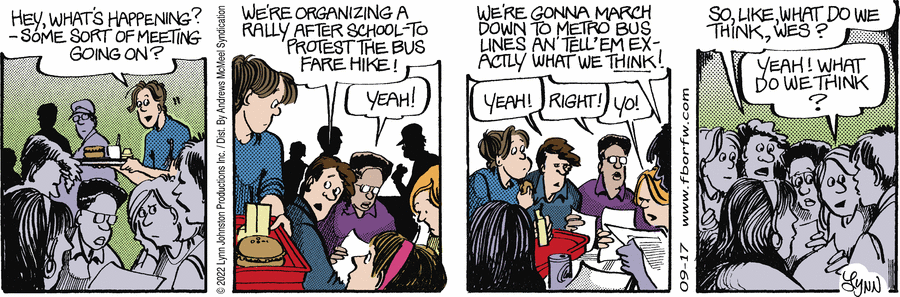 Lynn's Comments: This story is an embarrassing piece of personal history. I was in junior high school when they decided to raise the bus fares. One of the students was a real activist and she organized a rally to protest.