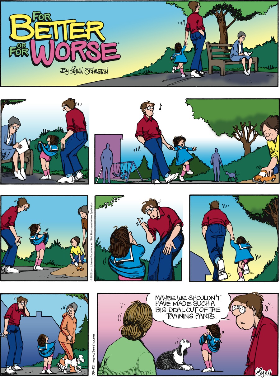 Lynn's Comments: When I was about three years old, my aunt had given me a pair of very frilly under pants. The entire backside was ruffled, and I was thrilled with them. So much so that I went around the neighbourhood lifting my skirt to show them off. I didn't understand why my dad was so upset or why he made me come home and put on a pair of overalls.