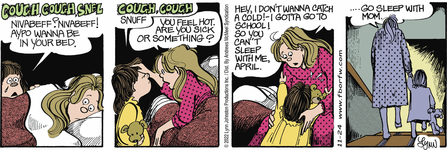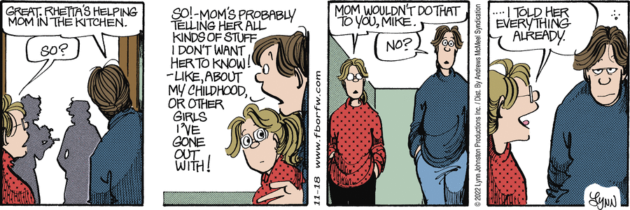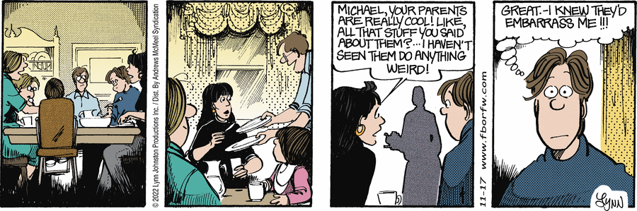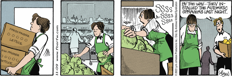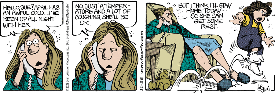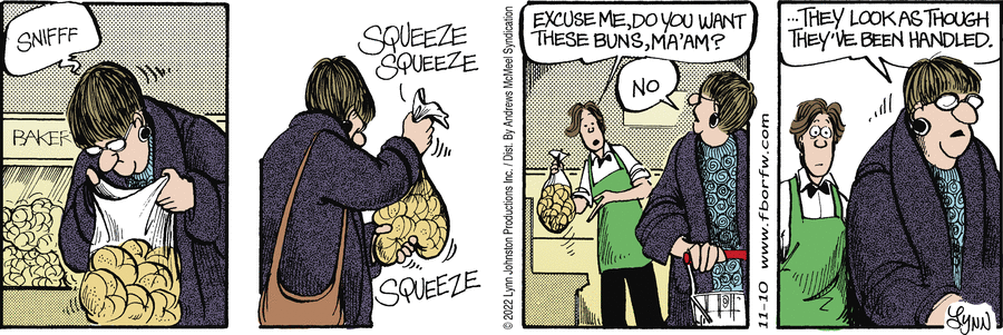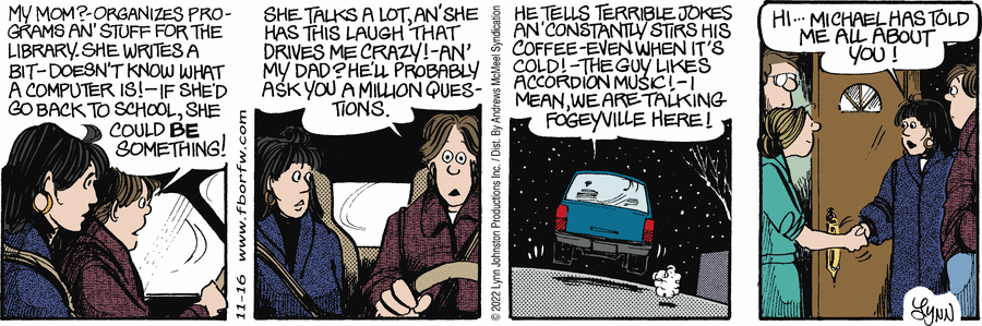 Lynn's Comments: In order to draw this Sunday strip, I needed to take a series of photographs showing how one's hands are positioned while opening a CD case. I still have these odd polaroid shots!