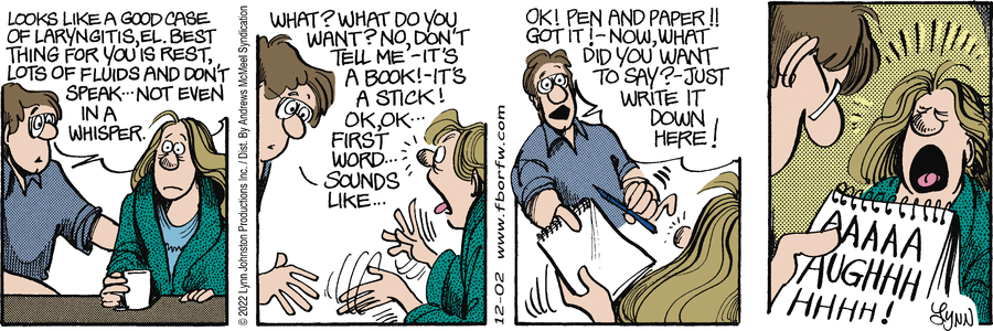 Lynn's Comments: Another bad pun. I couldn't resist. This kind of punch line made FBorFW impossible to translate into other languages.