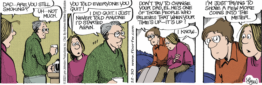 Lynn's Comments: My dad smoked until the day he died—of lung cancer. To keep us from knowing he was smoking, he'd go for a walk. This was funny...we could see him light up before he got past the kitchen window.