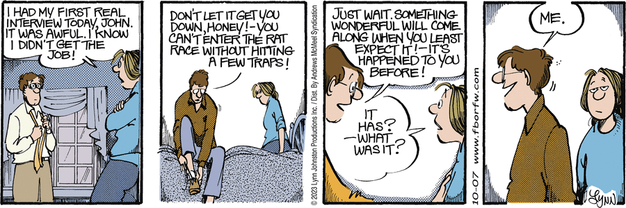 Lynn's Comments: I did this strip to address the readers who insisted I change Elly’s hairstyle. As one of the main characters in the strip, I felt I had to keep her looking relatively the same. Over the years, she sported a pony tail, a bun, and at one time, I "gave" her a perm. Still, the part-in-the-middle-and-tied -back-look was her signature and I didn't want to alter it. The frump-look was firm. This strip let the critics know that I was aware of their hatred for the hairstyle...but I wasn't about to change it!
