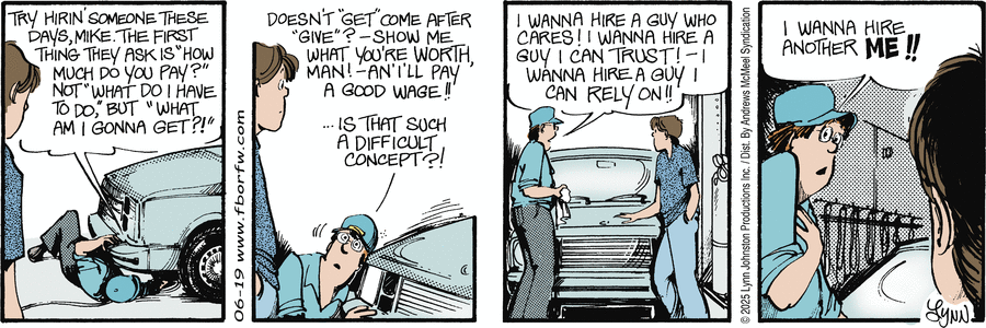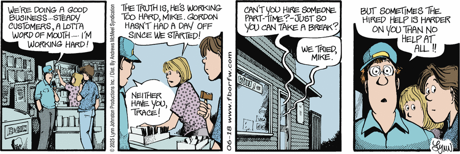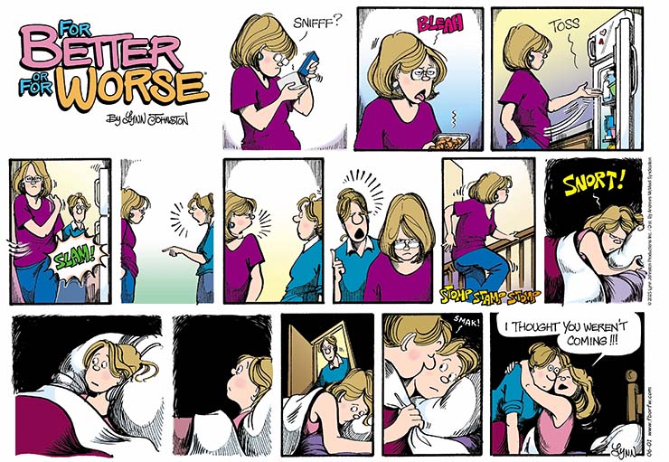 Lynn's Comments: Being able to say what I said in the last panel was a break through. Up until this time, cartoonists were prohibited from talking about body functions or to even show a husband and wife in bed together. As long as we were careful in the way we worded our lines, the editors gave us all quite a free range.