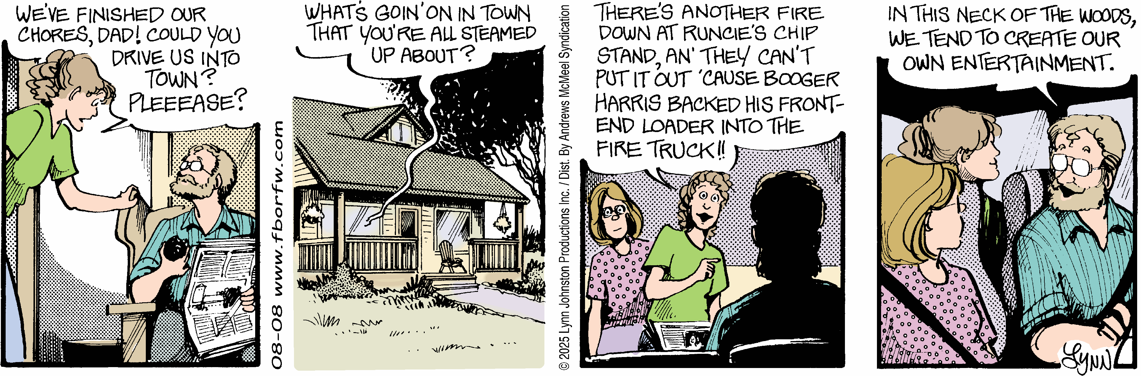 Lynn's Comments: All the names here refer to friends and family who lived near the farm. It was fun to know that they’d be talking about the comic strip over morning coffee at the local diner.