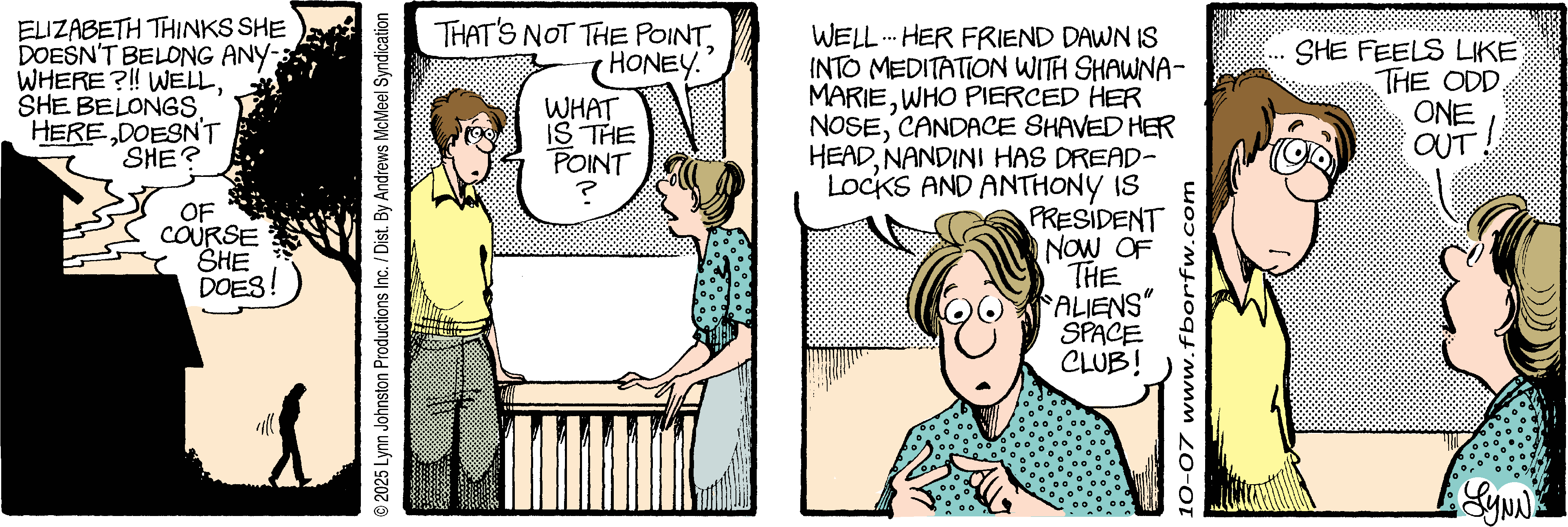 Lynn's Comments: I’m looking at this again as someone they now call “elderly.” (Aaaaughhhh!) I was in my 40s when I did this strip, and from my present vantage point, I can’t imagine what these ladies are grousing about.